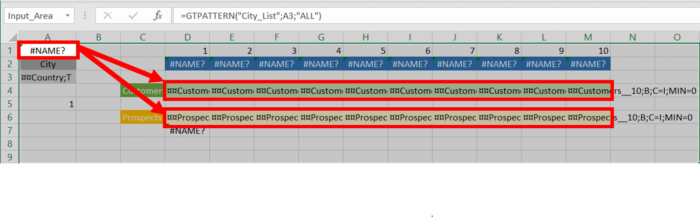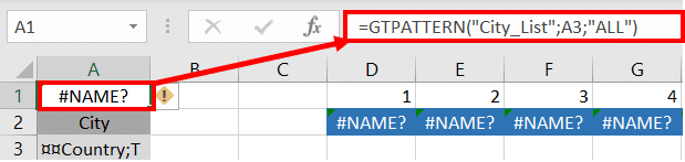 We will first display the list of cities entered in the pattern in the first row of the table, using an INDEX formula.We want to retrieve the name of the city from the compartment data and will use a GTCONTROL declaration for this purpose.